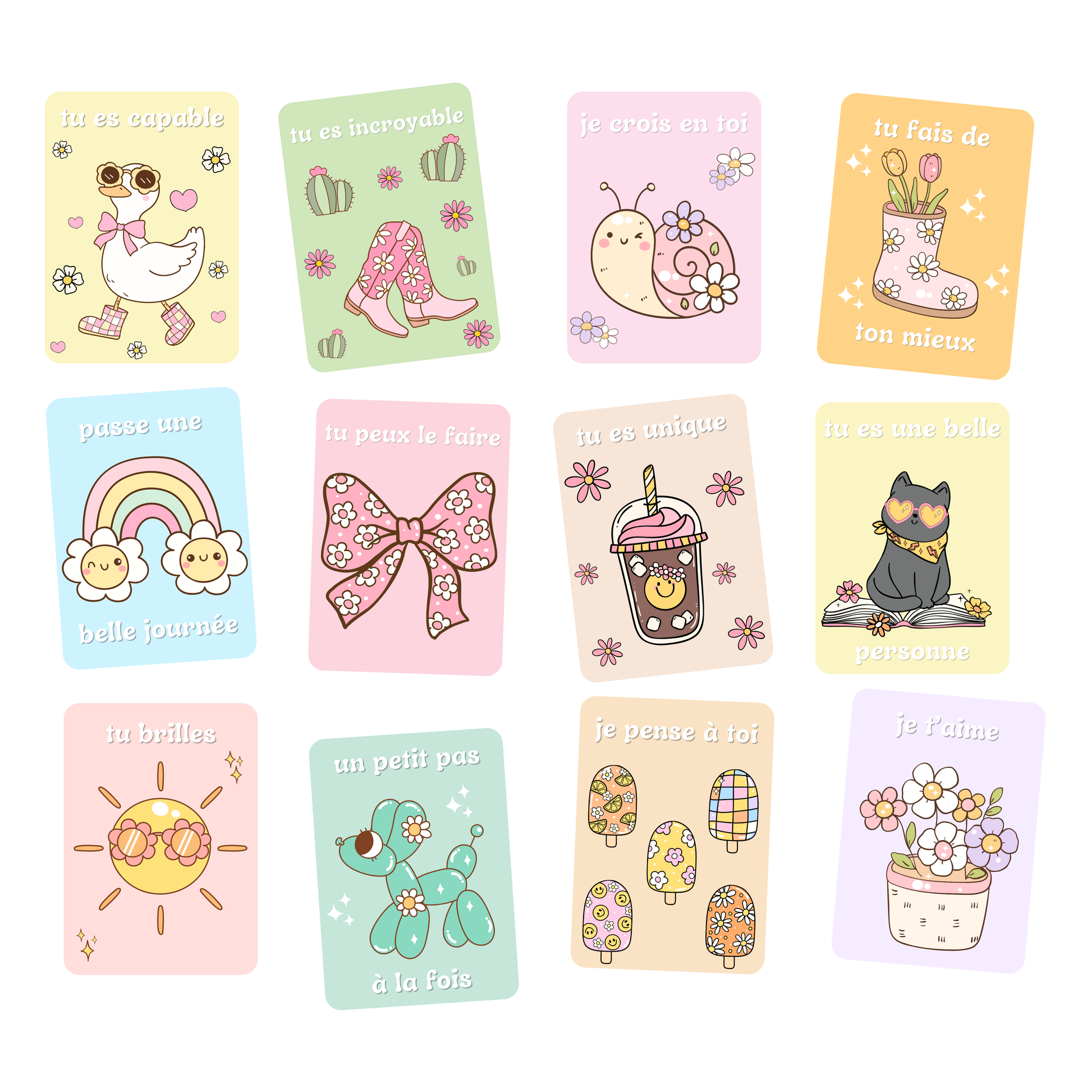 Petits Mots Fleuris est une collection de 12 cartes illustrées, pensées pour glisser un message doux, rassurant et positif dans la journée de votre enfant… ou simplement lui rappeler que vous êtes là.